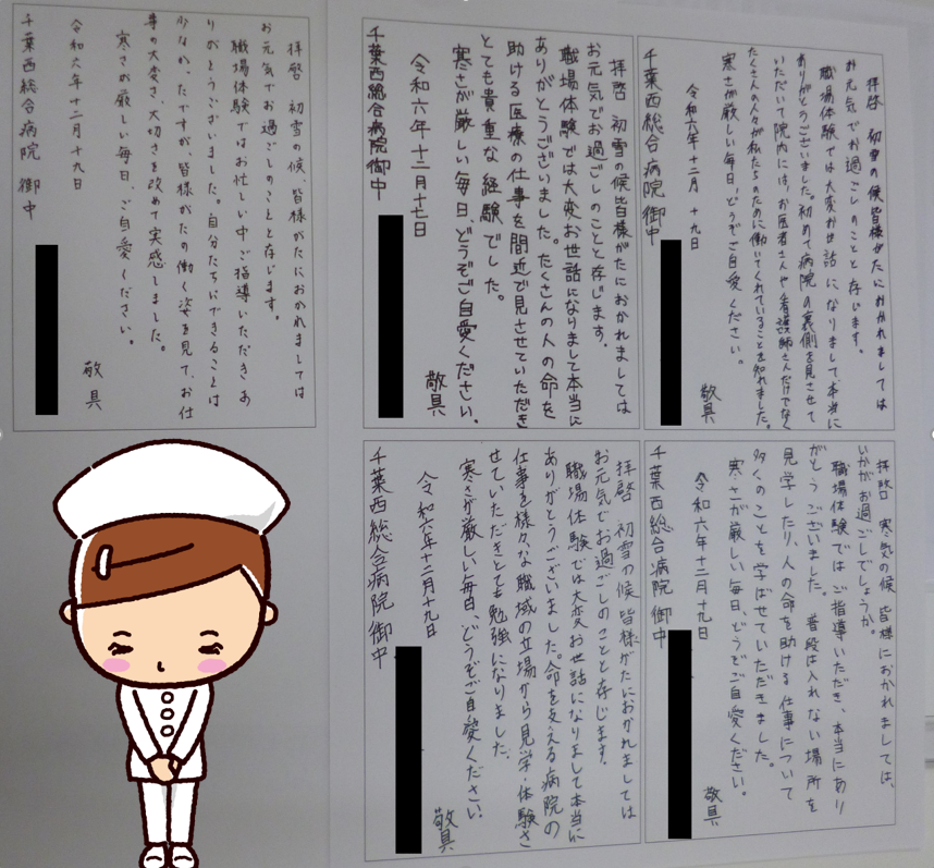 病院体験が終了したあとに彼らから手書きの御礼状をいただきました。