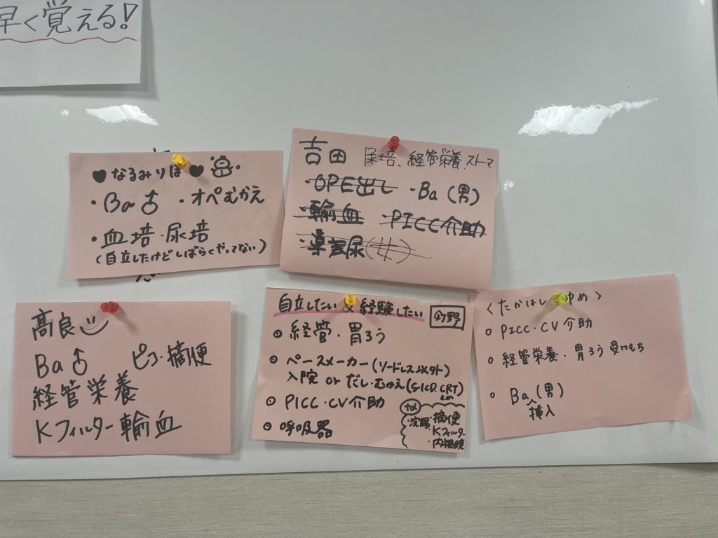呼吸器疾患や重症心不全の患者さんを受け持つ機会も増え、広い視点で患者さんを捉える必要があること、また症状の変化が急なことも多く日々の観察や報告がより重要であることを実感しています。✏️