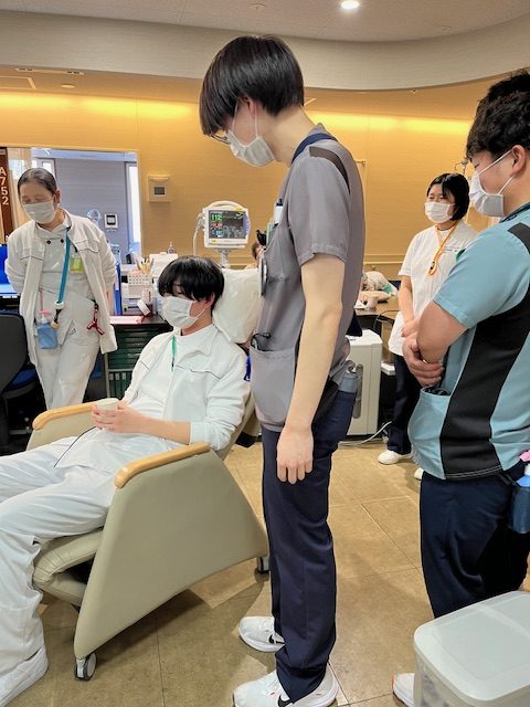 写真は誤嚥予防の食事時の体位について、実際に体験しながらみんなで考えたときのものです🍒