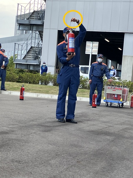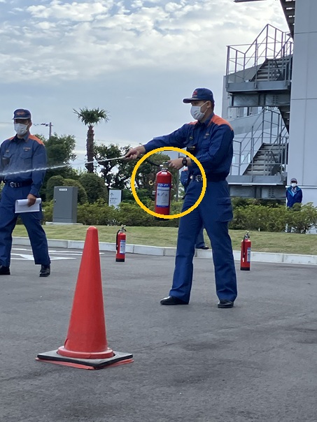 初期消火の訓練では、ニッシーは消火の合言葉を覚えたよ!皆さん、ご存じでしたか❓『ピン・ポン・パン』で消火です!ピン(安全栓を抜く)★ポン(ノズルを火元に向ける)★パン(レバーを握って消火剤を放射する)非常時は合言葉で消火ですよ!